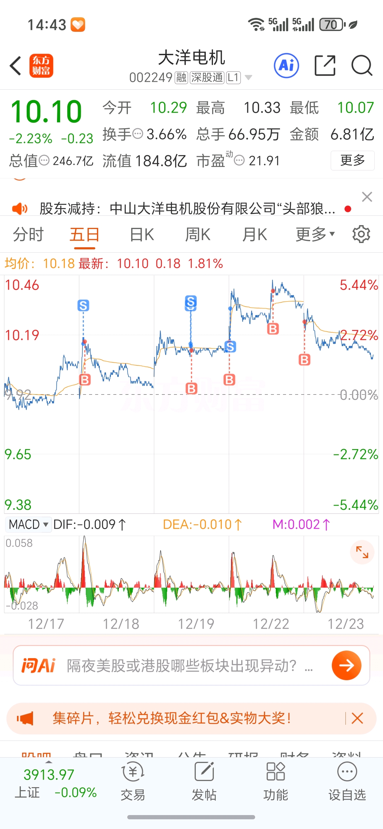 $大洋电机(SZ002249)$ 怎么在别的票好做T,在这个票都是做成了反T啊,本来成本13现在成本14了