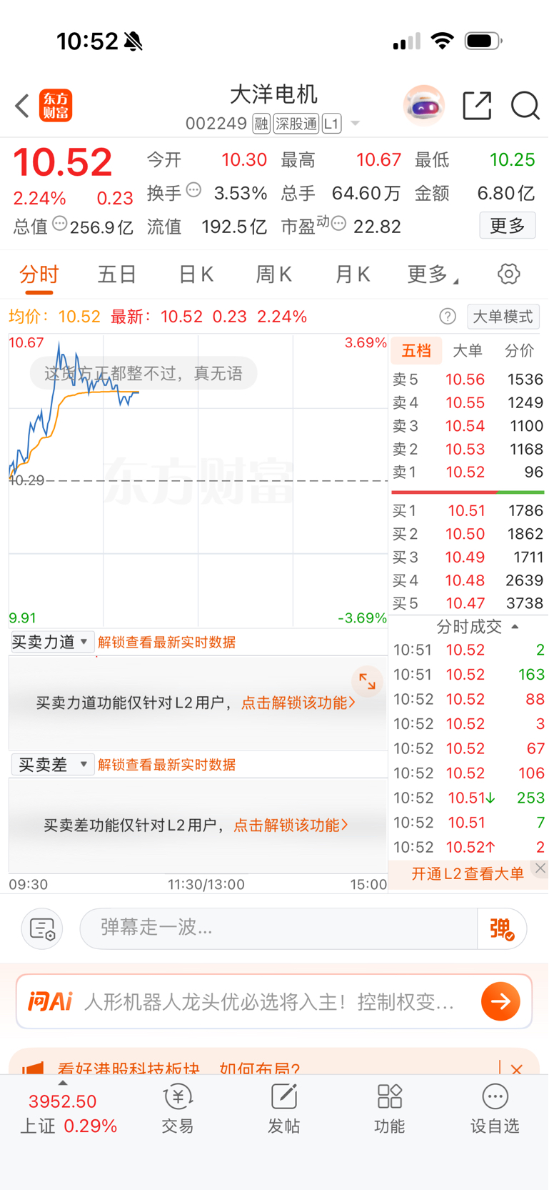$大洋电机(SZ002249)$ 10.52