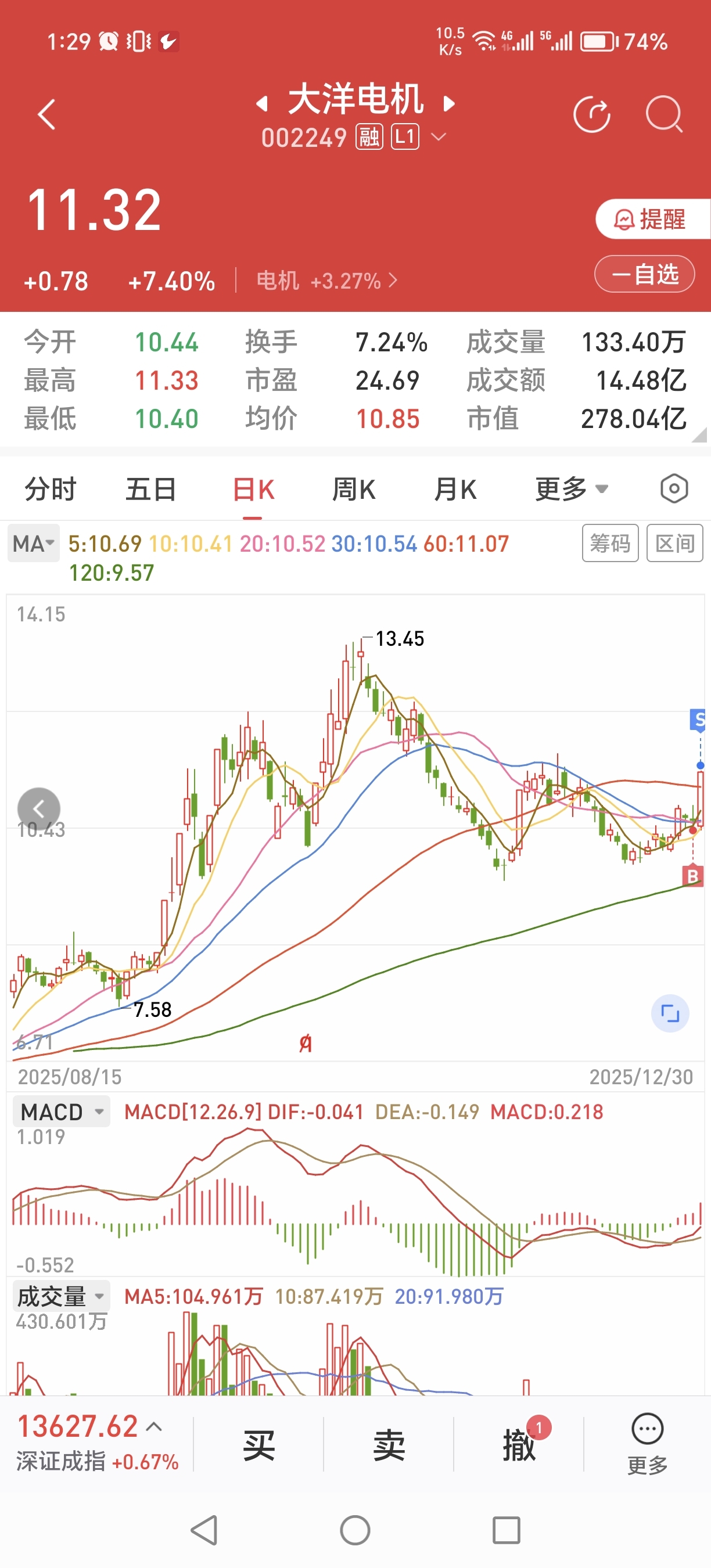 $大洋电机(SZ002249)$ 昨天清仓了,我就估计今天你回调,毕竟昨天利好机器人板块,节后再来。