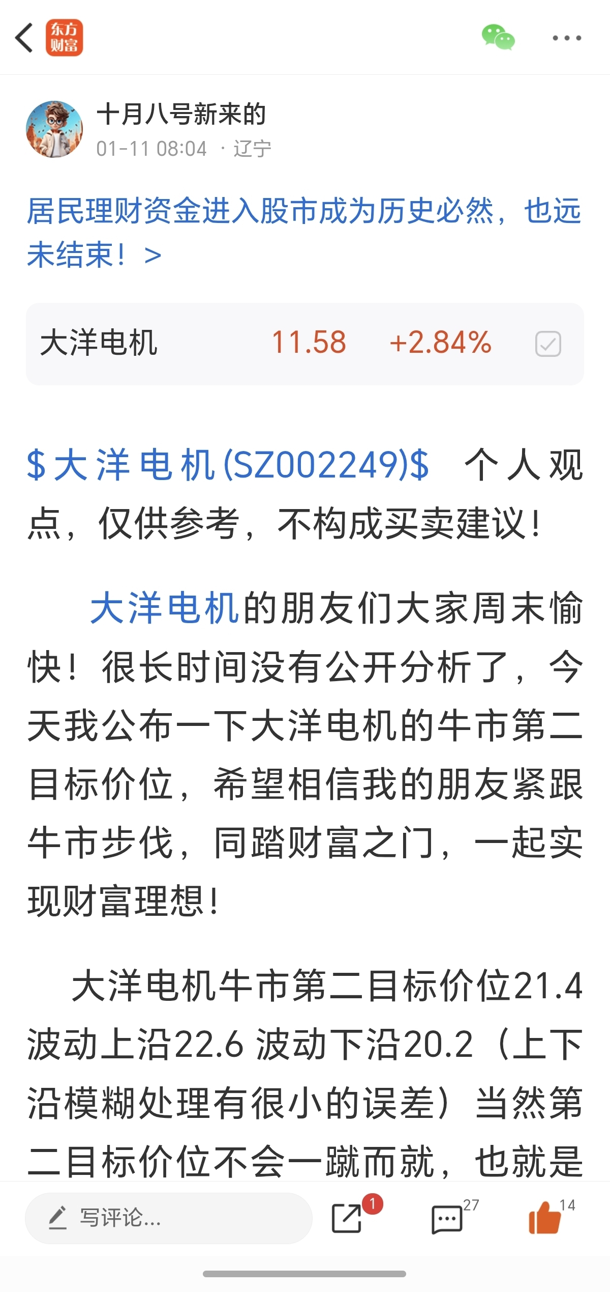 大洋电机自我提示抄底以来再创反弹新高!这里要面对一个强阻力(1) 大概就是11.6区间,我认为短暂震荡蓄势之后就会向着新高拉升!