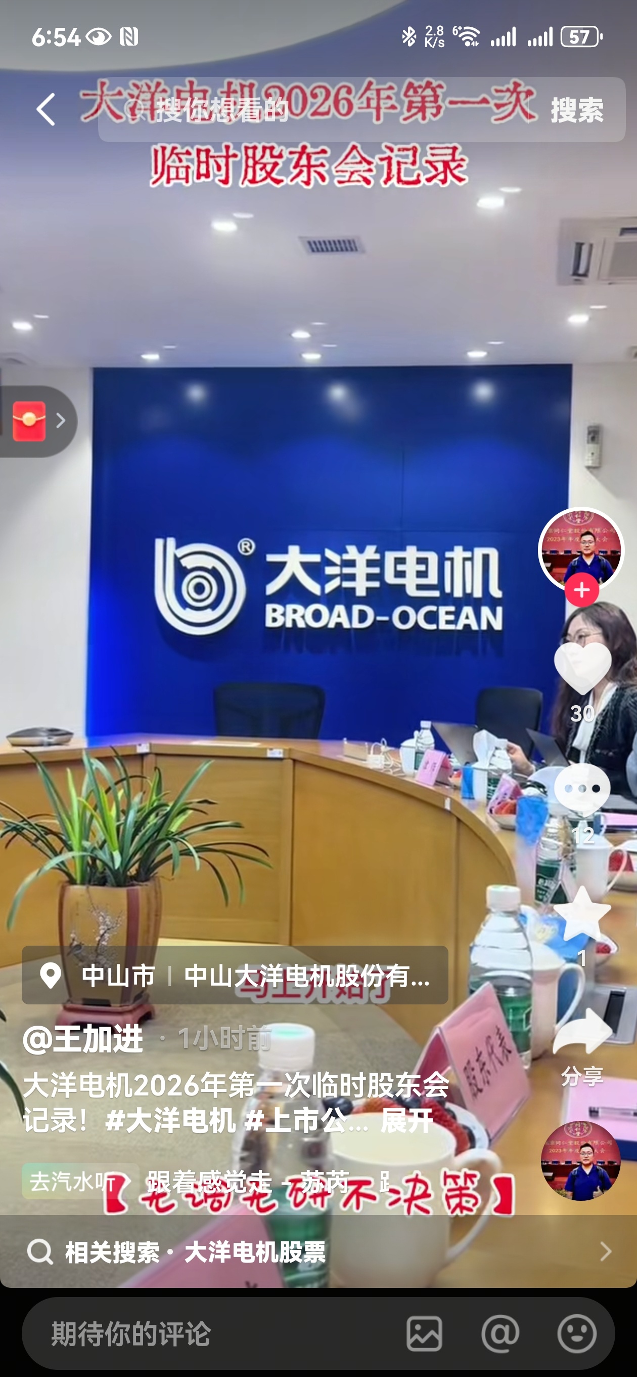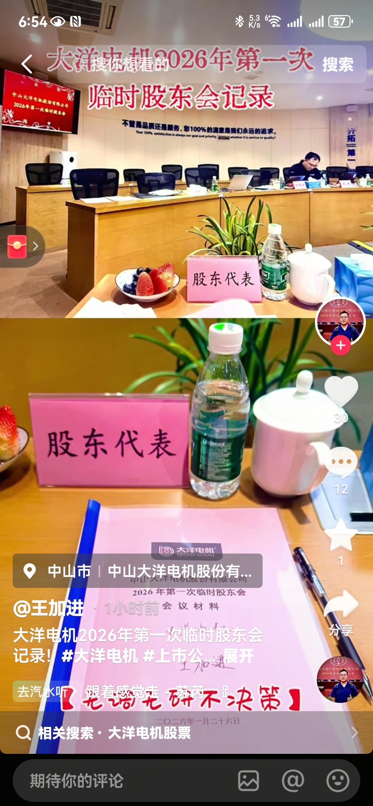 $大洋电机(SZ002249)$ 三位股东,抖音刷到了