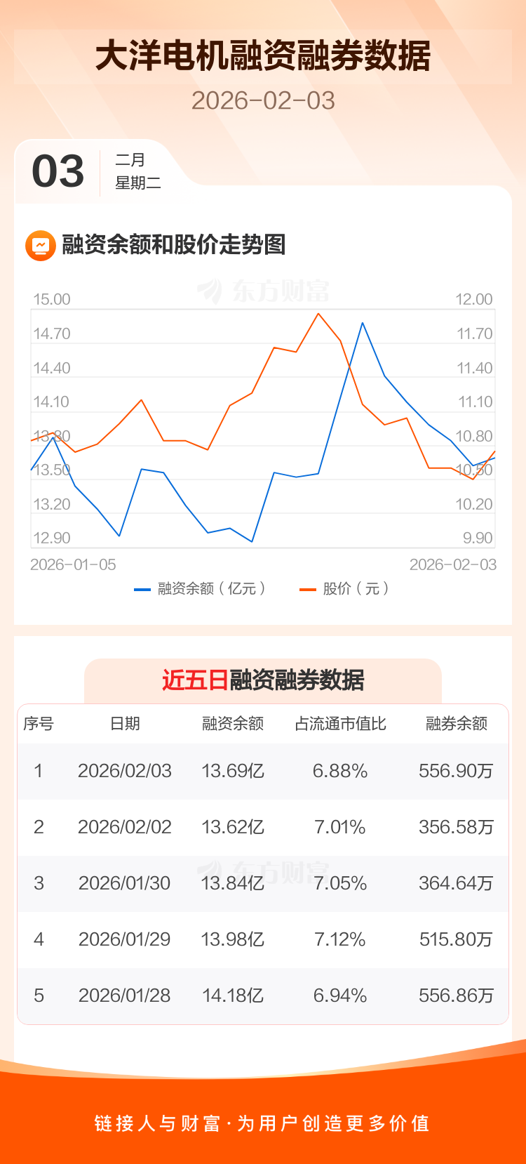 交易所最新数据显示,大洋电机于2026年2月3日获融资买入6049.42万元,融资偿还5294.94万元,当日融资净买入754.49万元。目前,该股融资余额13.69亿,占流通市值比例为6.88%。