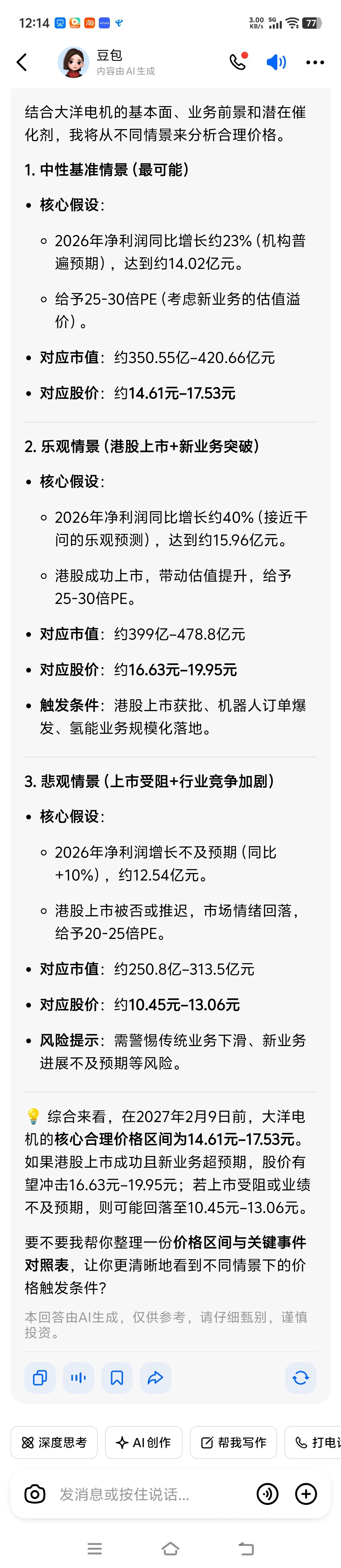 $大洋电机(SZ002249)$ 同志们,看看豆包同志的分析,是否合理?上涨空间大,下跌空间小,欢迎大家一齐探讨研究研究,,,,,,,,,,善哉善哉