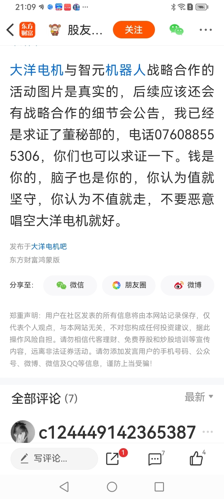 大洋电机在东方财富网发现栏目的帖子点评