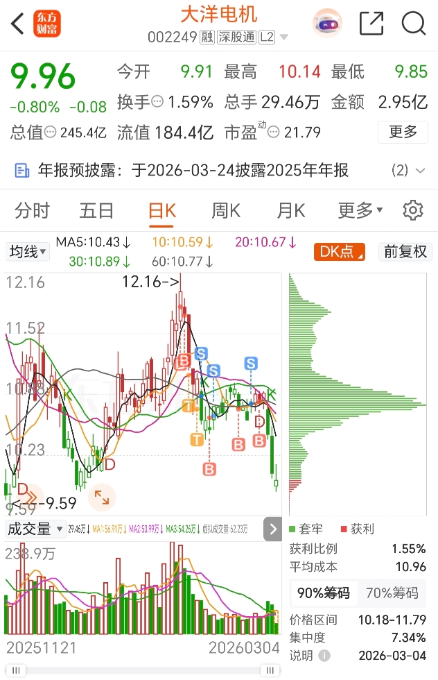 $大洋电机(SZ002249)$ 我怎么看上你的
