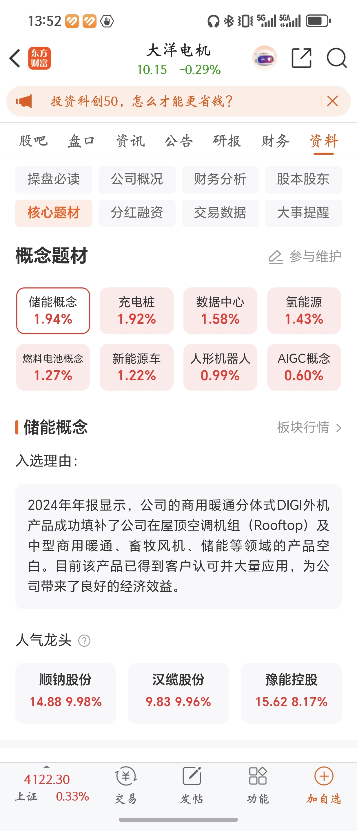 $大洋电机(SZ002249)$ 所属的板块都涨一个点以上,就他还是绿的。