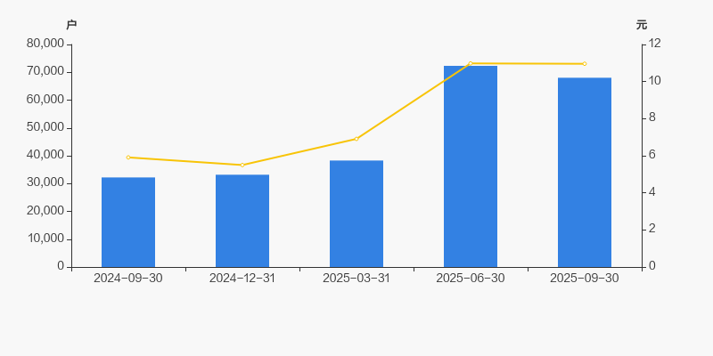 2024年9月30日至今,公司股东户数成倍增长,区间涨幅达111.31%。2024年9月30日至2025年9月30日区间股价上涨85.48%。