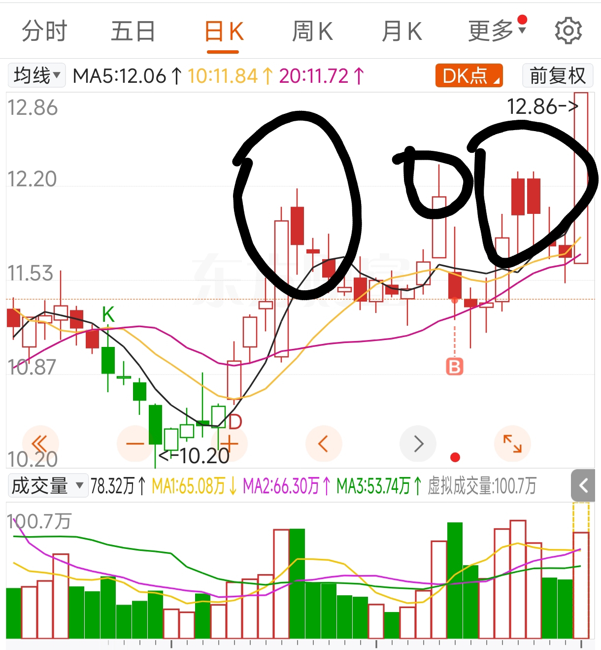 之前十来天开始,庄家一直故意压价吸筹,大家看看K线图。所以这一波上去至少150%