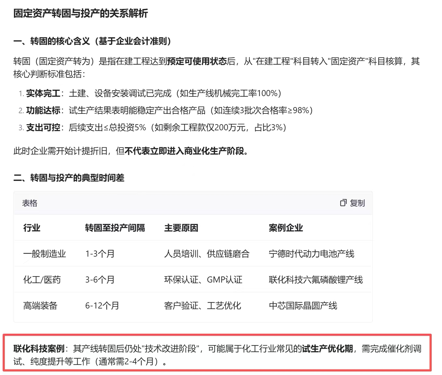 虽然董秘更新回复,六氟磷酸锂仍处于技术改进阶段,但转固已是量产的前期标志了