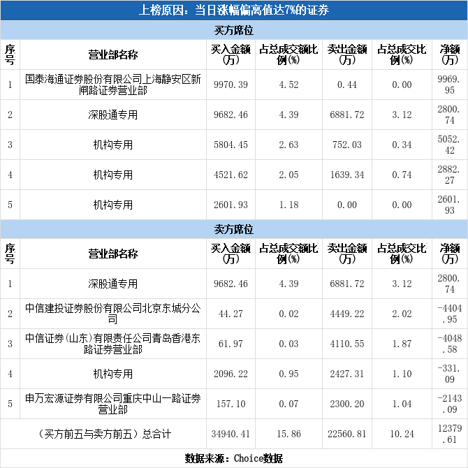 今日龙虎榜单上出现了深股通的身影,占据了买二、卖一的位置,净买入2800.74万元,占当日成交总额的1.27%,是获深股通净买额最高的个股。除此之外深股通还参与到了粤桂股份、大中矿业、富祥药业等10只个股中,其中3家呈现深股通净买入,获净买入最多的是众生药业,净买额为1943.20万元;7家呈现深股通净卖出,遭净卖出最高的为粤桂股份,净卖额为5524.66万元。