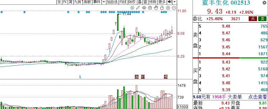 技术方面,早盘低开但一直维持横盘,并没有大单流出。最近走势都是低开高走,所以早盘开盘横盘震荡逢低进场。今天走出了十一连阳,午后一个拉升动作,然后又回落,还是维持蓄势模式,10月22日那天涨停了,封板很好的,之后却又掉了下来,现在的反抽很有可能是要去完成反包的,也就是后面破前高9.75的概率还是很大的,之后再看保顶策略了。