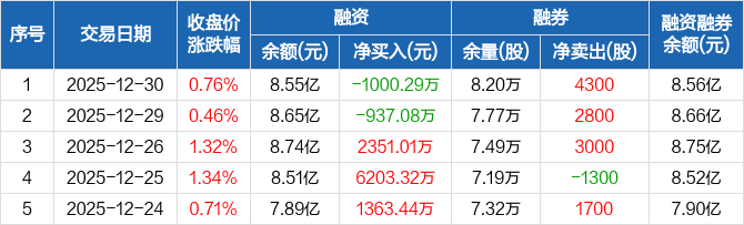 联化科技:融资净偿还1000.29万元,融资余额8.55亿元(12-30)
