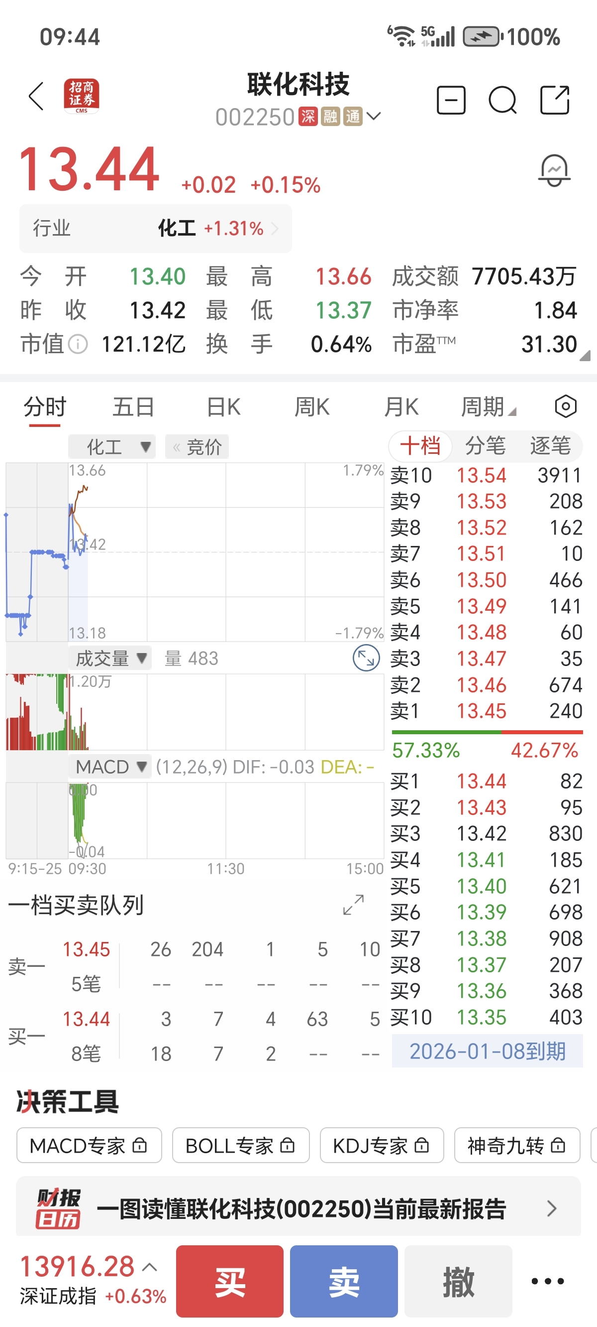 $联化科技(SZ002250)$ 今天能进吗,1354,3千多手