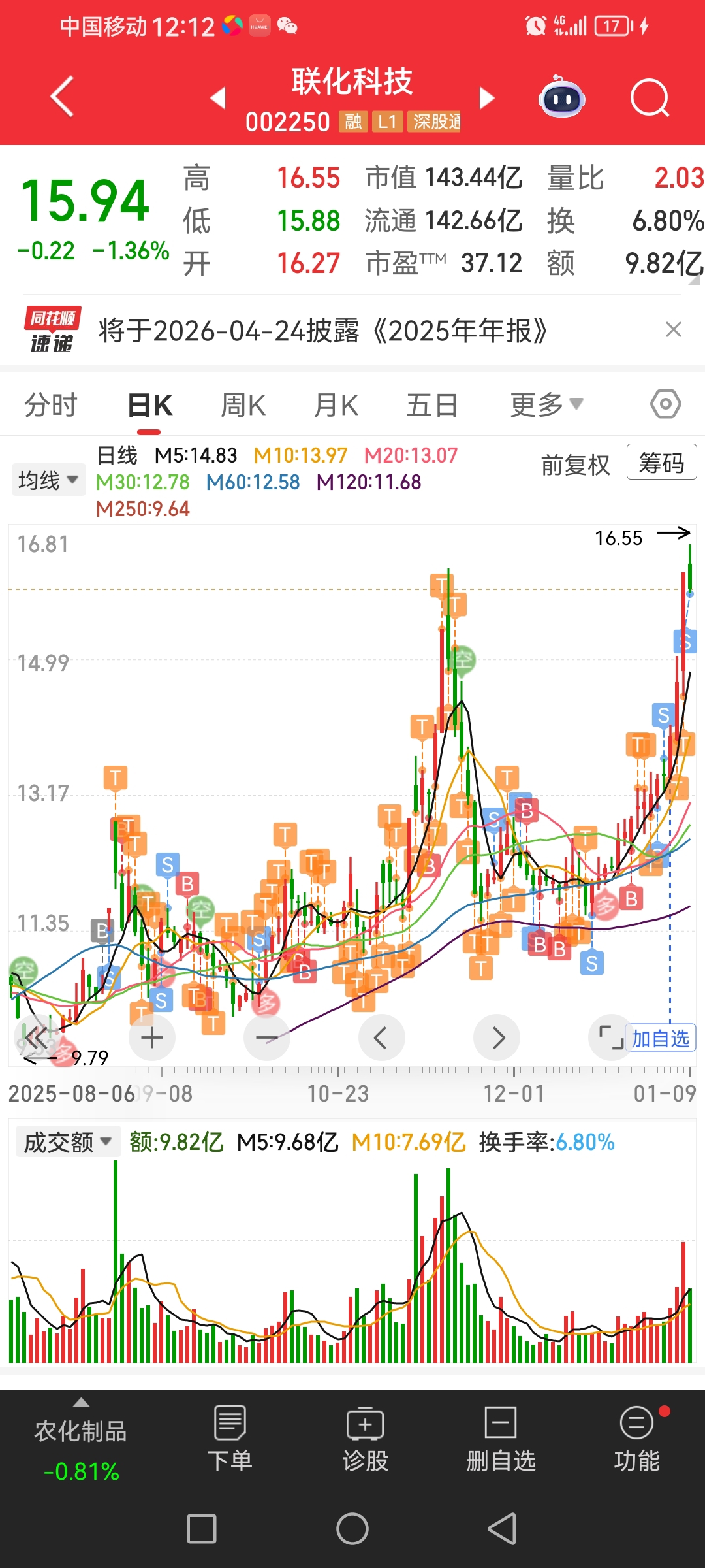 $联化科技(SZ002250)$ 兄弟们赚了40个点清仓走人了。大家发财。
