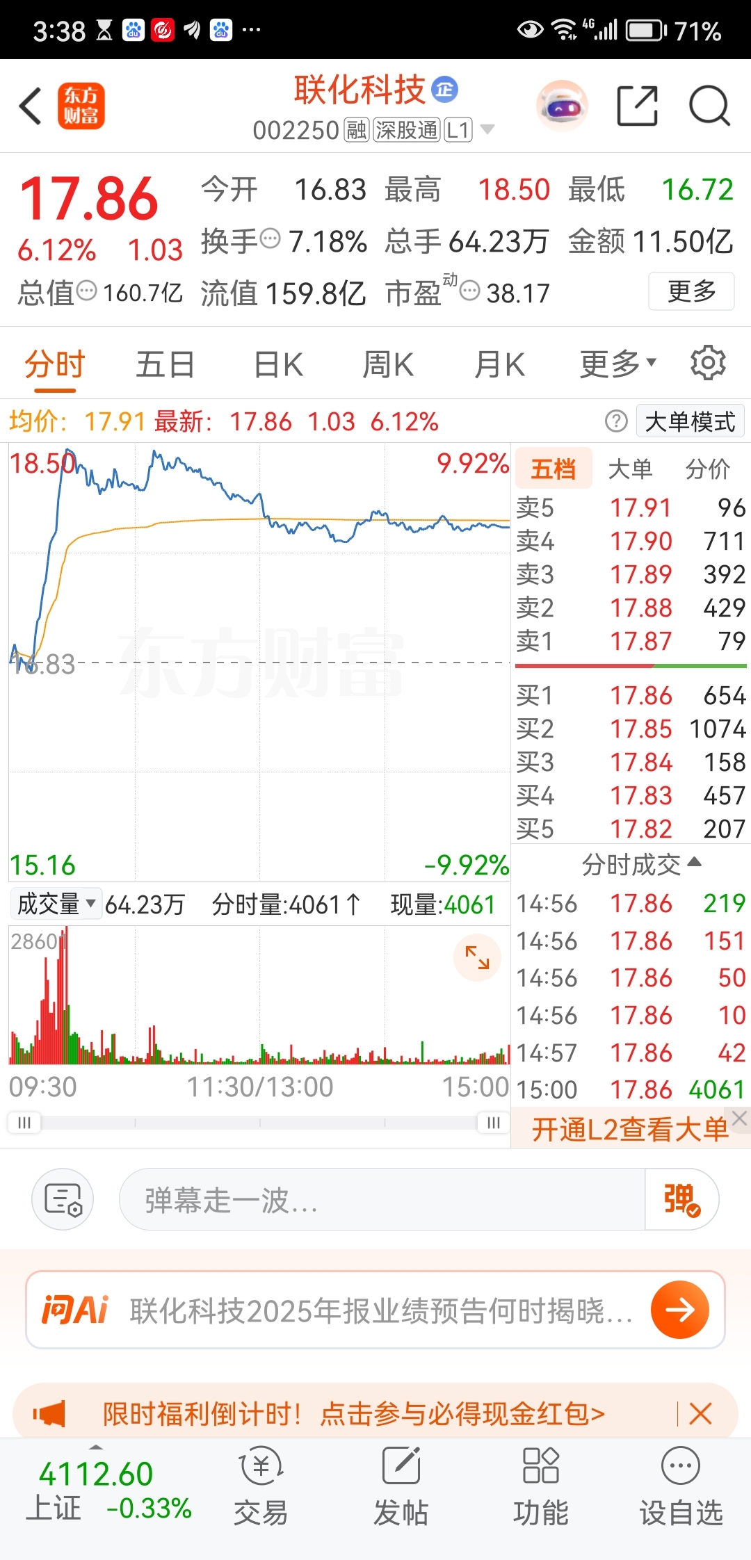 $联化科技(SZ002250)$ 标准的钓鱼线,笔直的鱼竿没折弯,把打板进的一锅烹了。