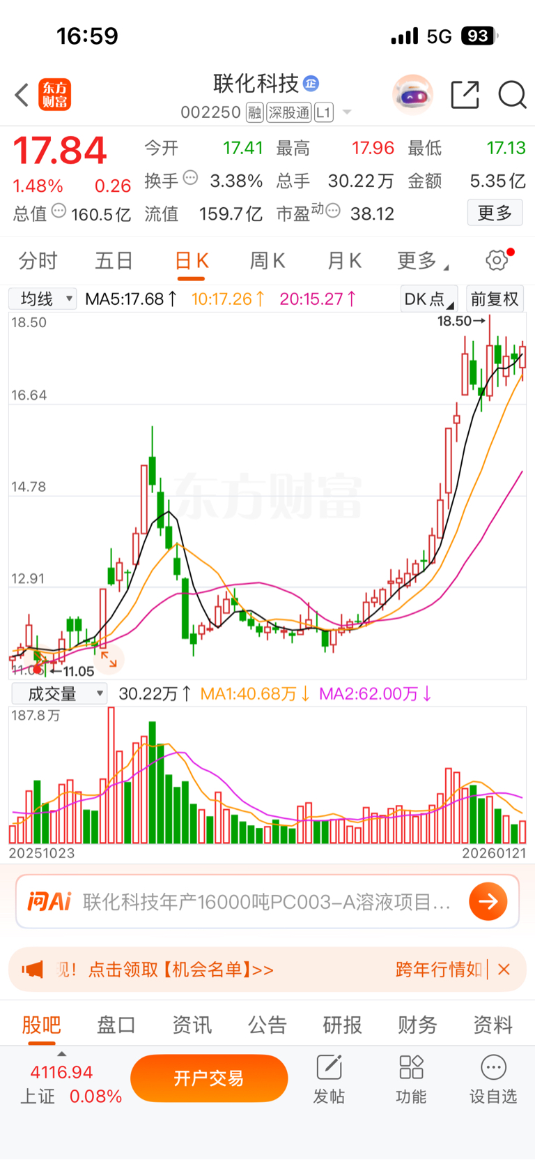 $联化科技(SZ002250)$ 我实在想不出,你们说的什么底部松了,什么出货,怎么看都不像出货,反而像是洗出来,