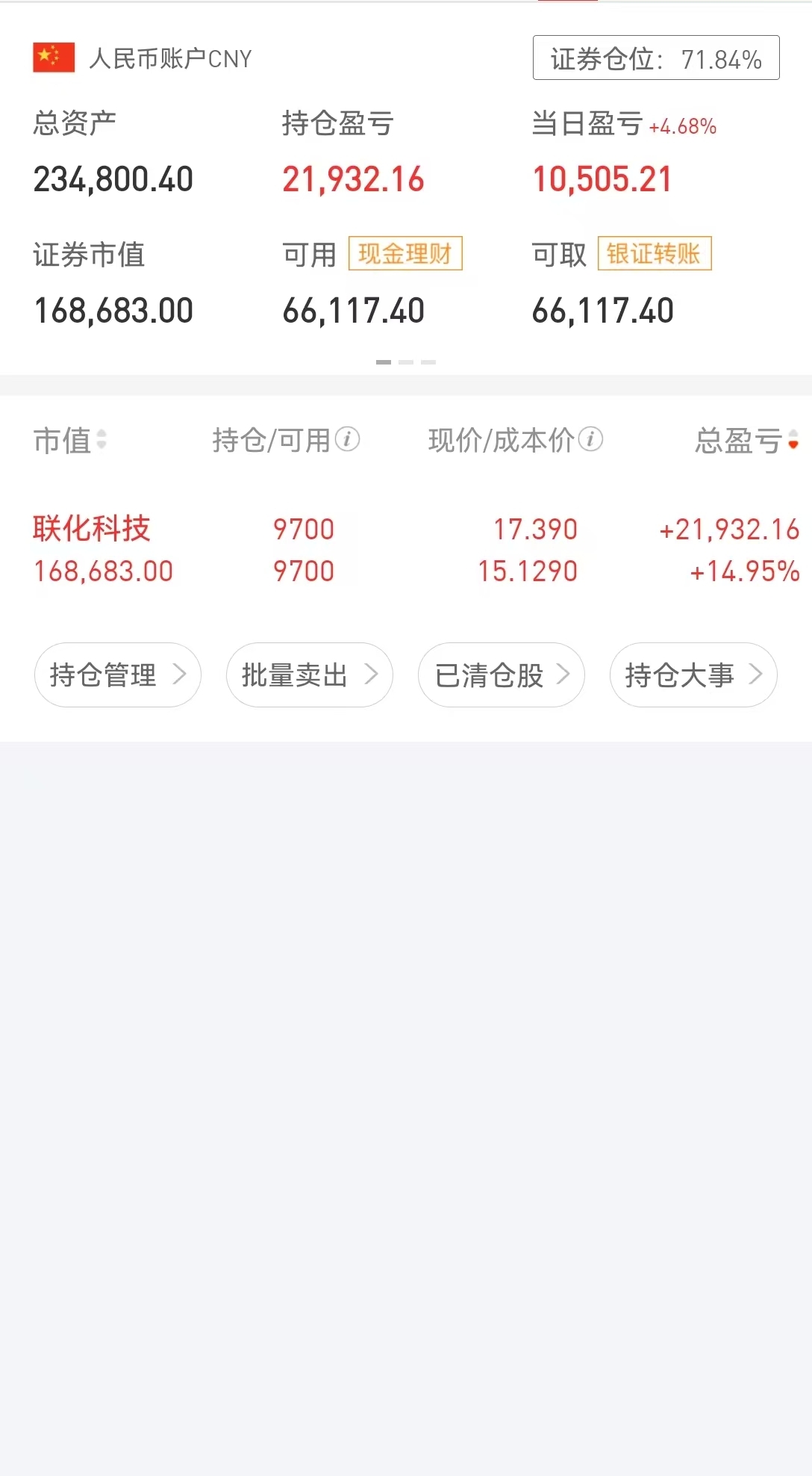 感谢化化让我挣得人生的第1桶金。周一我先撤了。以后我还会回来的,爱你化化