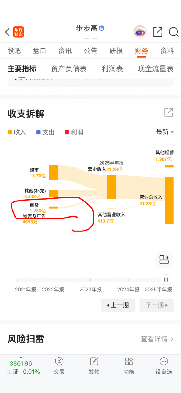 $步步高(SZ002251)$ 百货占了超市的大头,正常情况一天的营业收入是超市一天的收入的10倍才算是合格,这就是为啥营业收入和利润上不去的原因,胖东来一年营业收入200多亿,百货占了大头,步步高什么时候能够把百货这块业务调改完毕并做好就会起飞,百货至少1-2年时间整改业务很麻烦