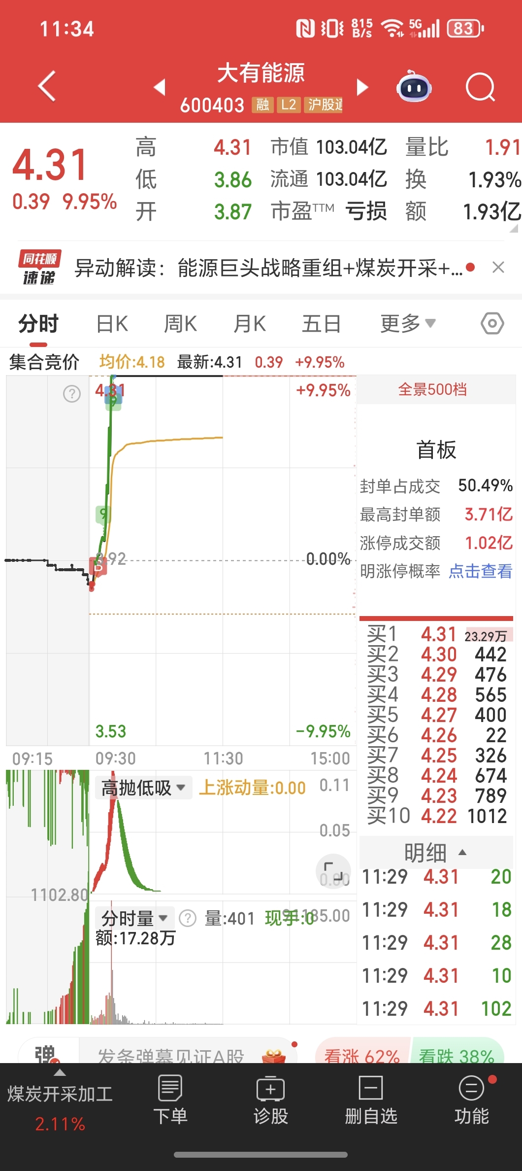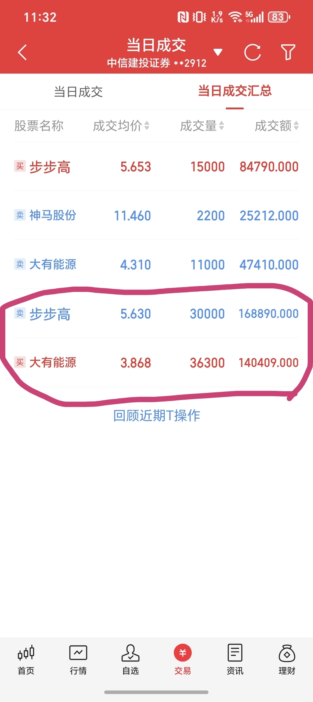 今作一:卖步步高买入大有能源,大有能源涨停T出又买回步步高!操作二:神马涨停