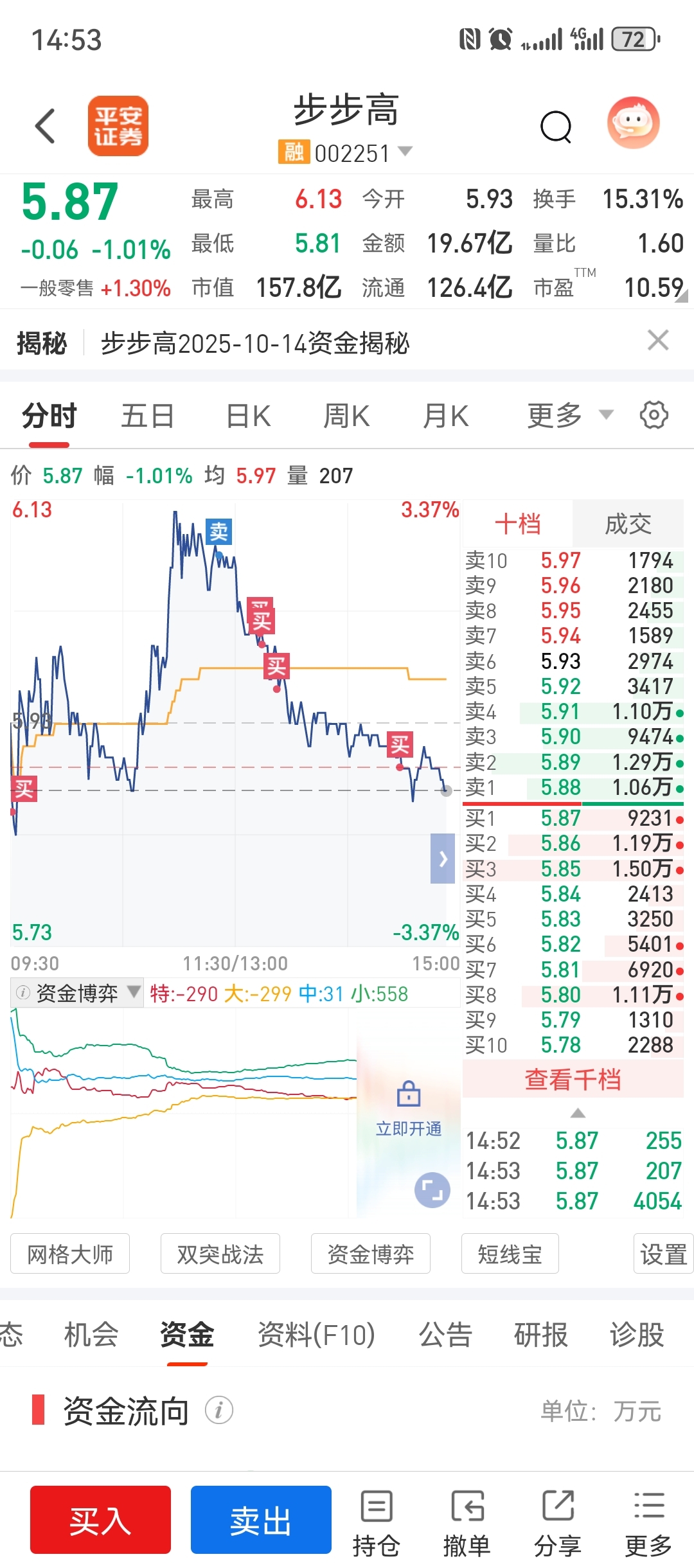 $步步高(SZ002251)$ 还是没操作完美!郁闷。只攒了几百了。