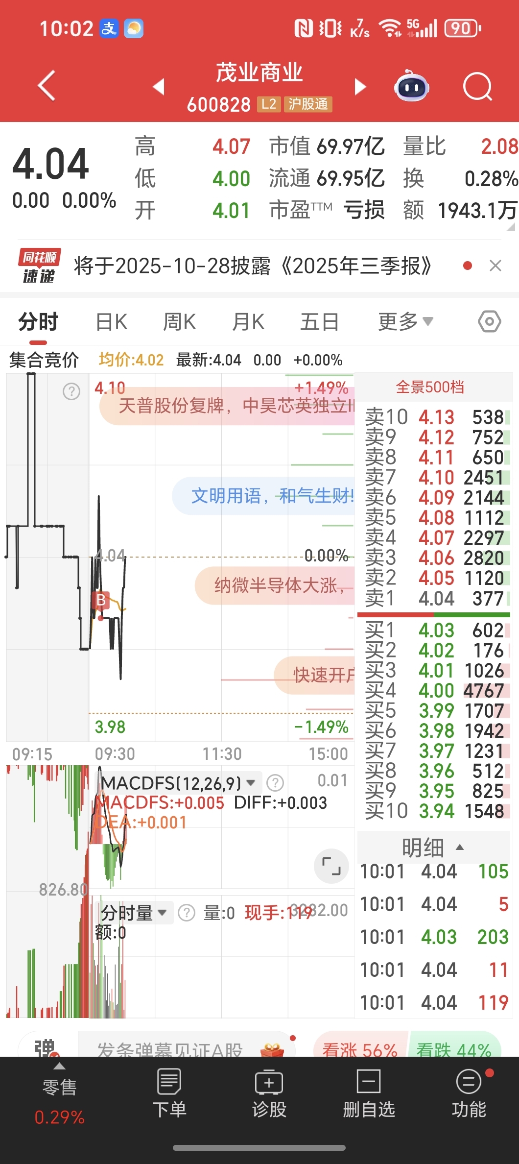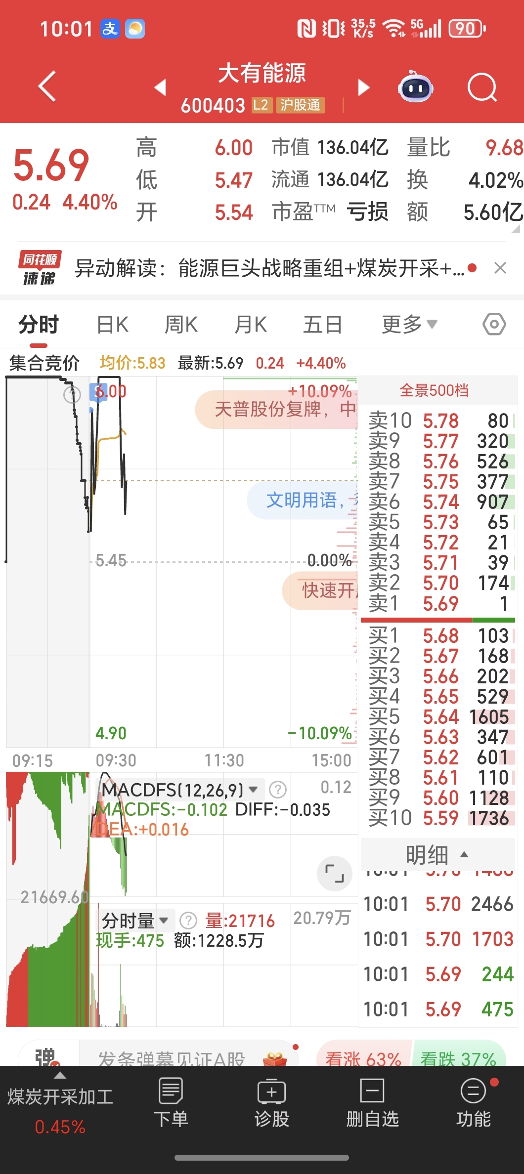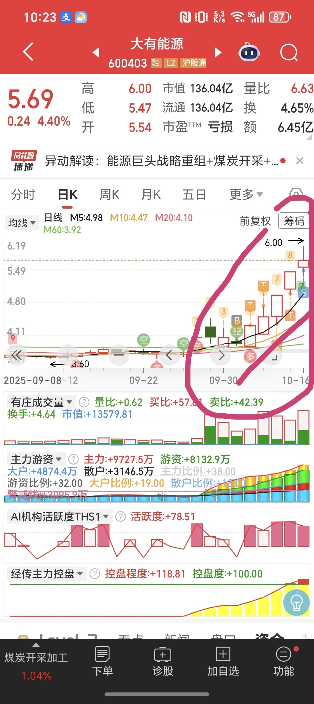 今天操作1:清仓大有能源五日线接步步高,低吸了一点茂业