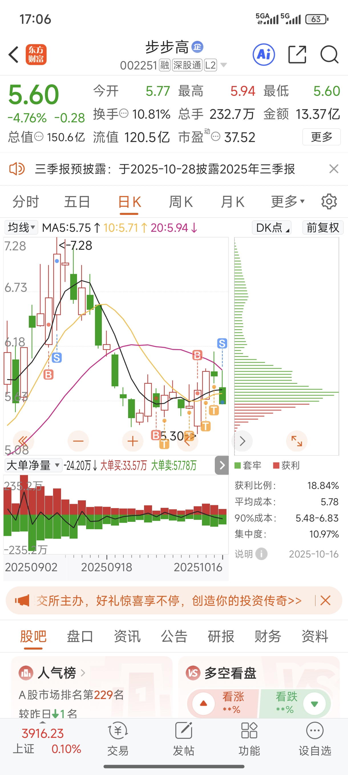 $步步高(SZ002251)$ 辛辛苦苦搞半天,今天一把收走,还倒贴两个点