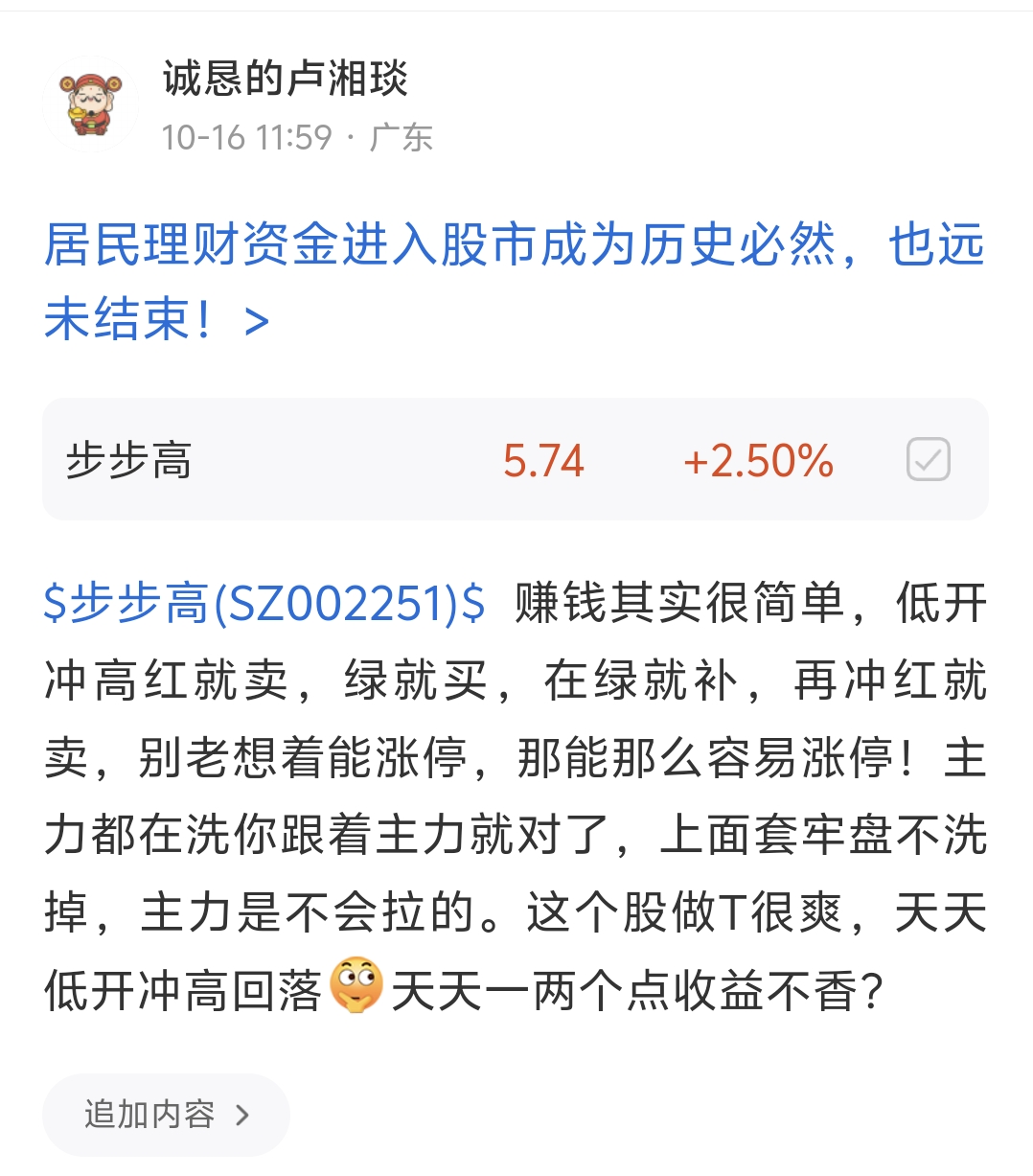 还是那句话,赚钱很简单,低卖高卖,经常低开的股,这股非常合适做T,你看前面那波,多少个冲高回落,本来涨20个点,要是跟着主力做T都有40个点的收益,卖的不是最高位也有30个点,个人意见。请勿学习