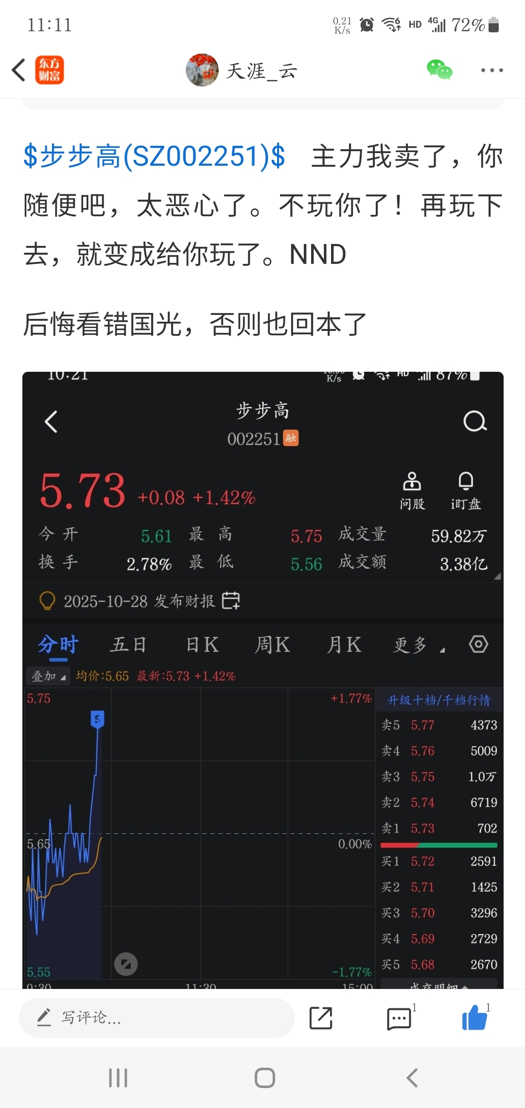 $步步高(SZ002251)$ 果然,我一出,主力必拉,这配合不上至圣王者都说不过去呀