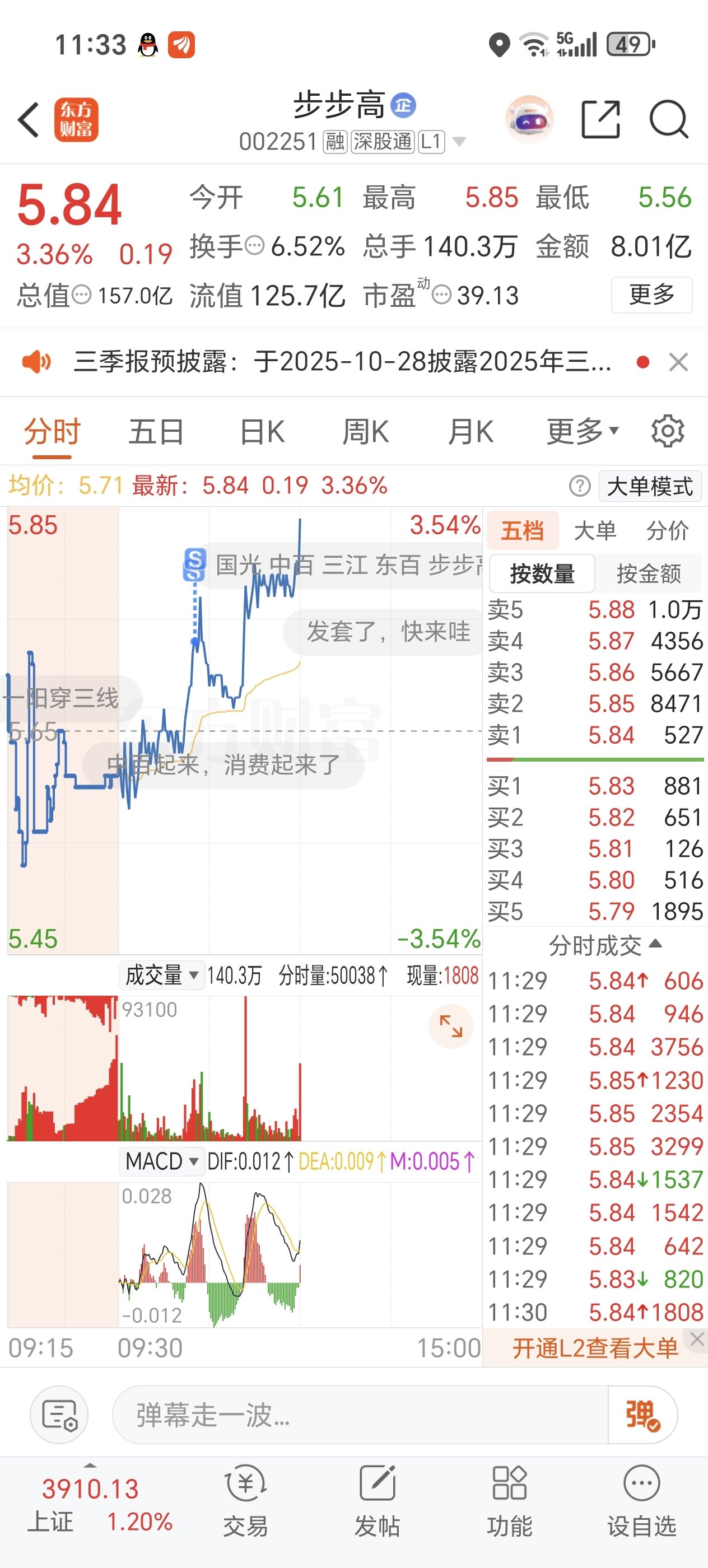 $步步高(SZ002251)$ 一直知道国光好但是我一直爱你,主力代替我像你二爷问好,至少买你一次没亏过今年利润有30%都是你给的