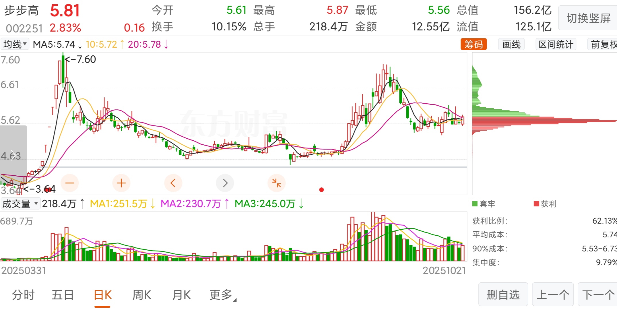 步步高最近底部形成了长长的筹码峰,每年的四季度到春节消费都会大涨一波,步步高每天