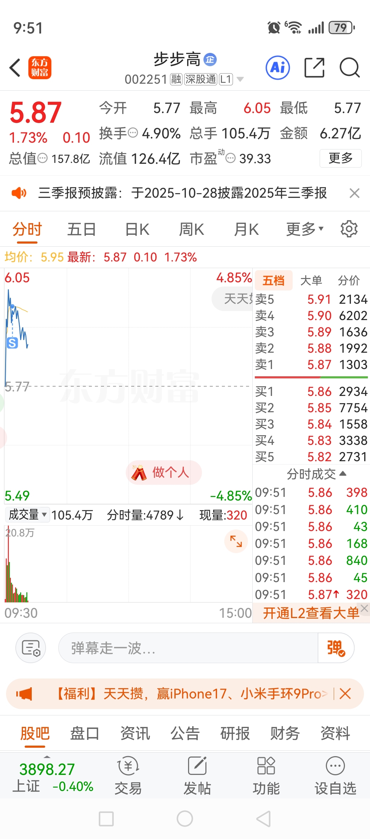 $步步高(SZ002251)$ 一卖就跌了。