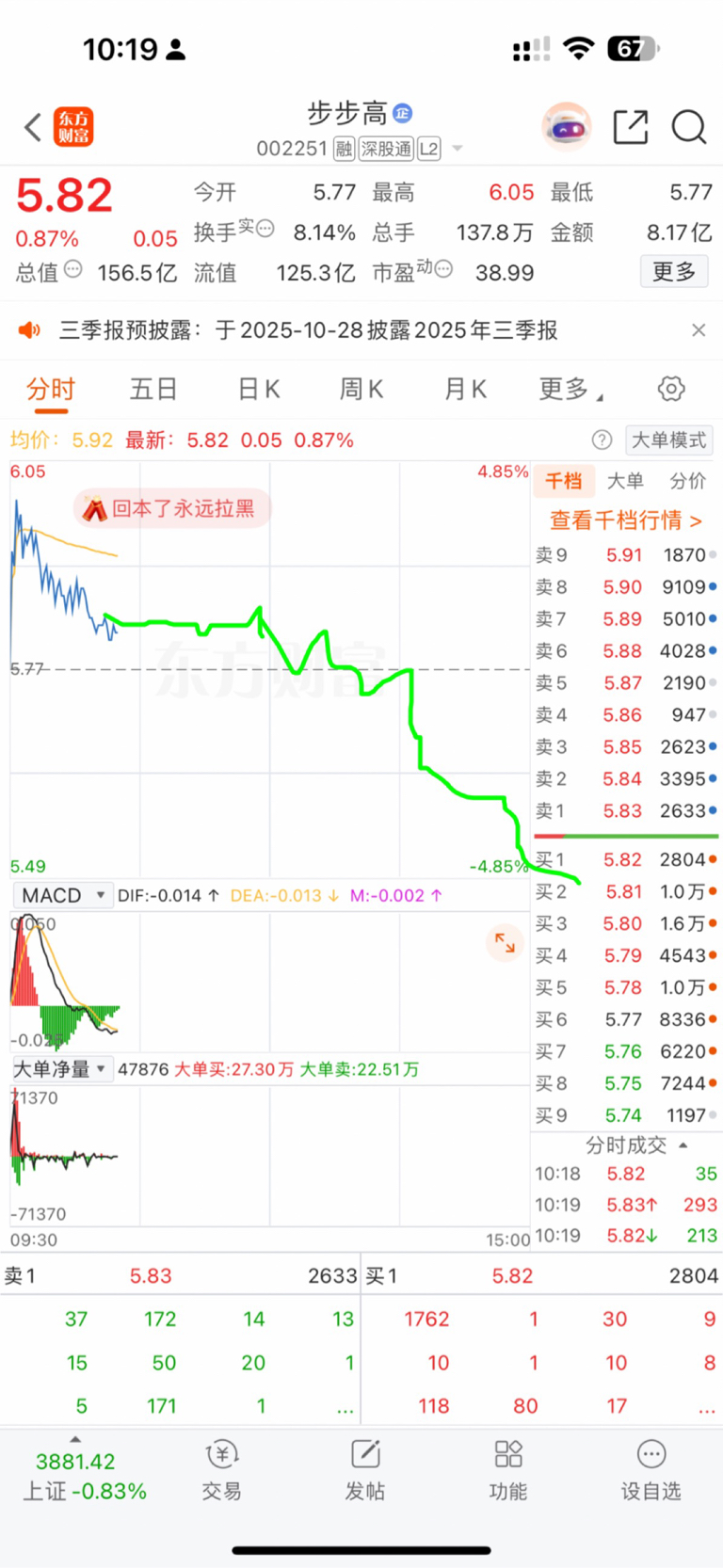 $步步高(SZ002251)$ 今天走势已画好,然后明天低开再买回来。