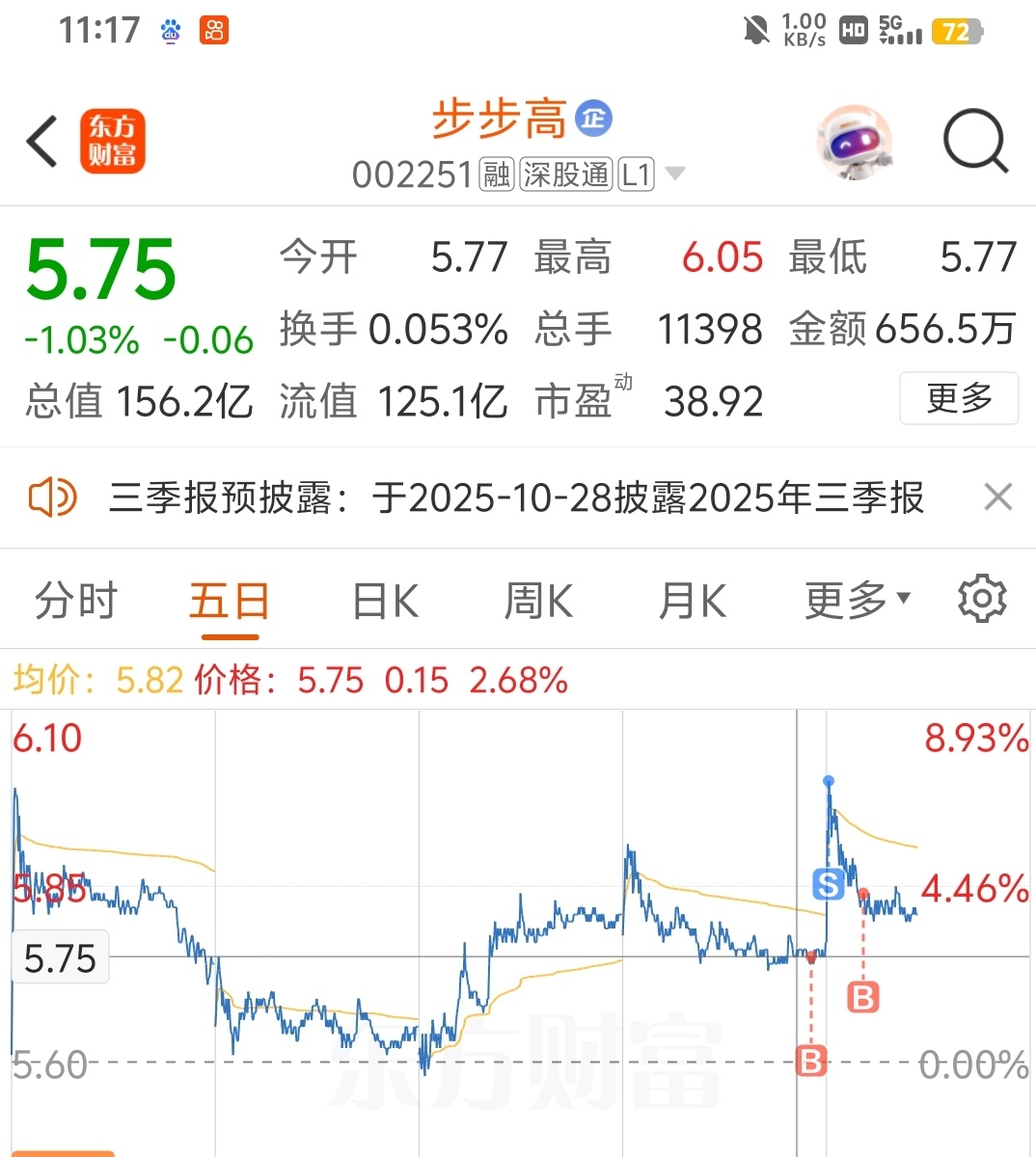 $步步高(SZ002251)$ 这个票想继续做,在哪都是亏,是个好庄家,一起共进退