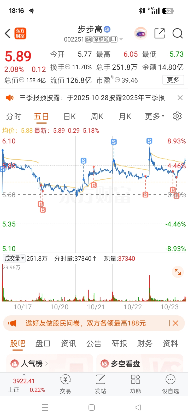 $步步高(SZ002251)$ 今天买了200股买少了,明天底开抄底
