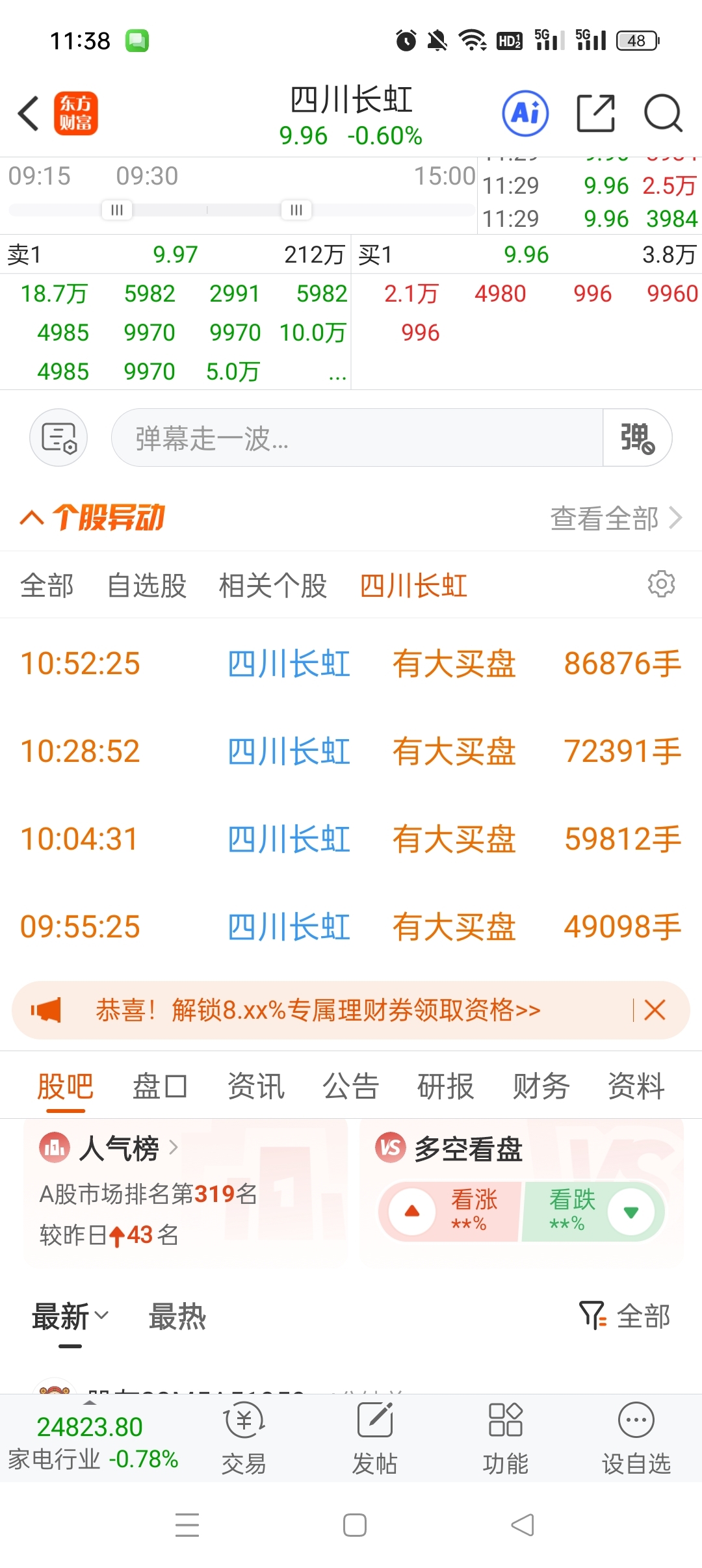 唉,又是和四川长虹一样,大买盘必跌啊,心累