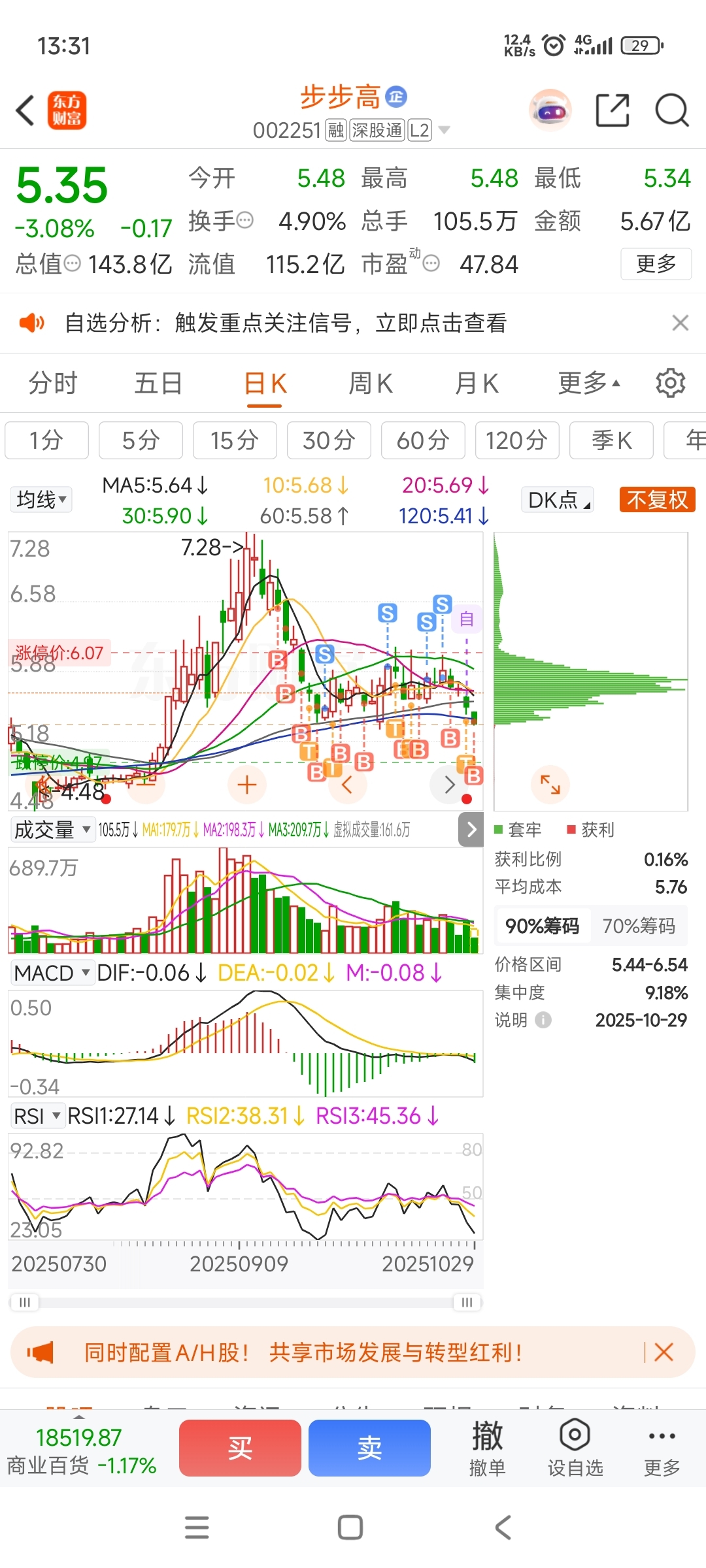 $步步高(SZ002251)$ 真是个绝户庄啊,几乎无人获利