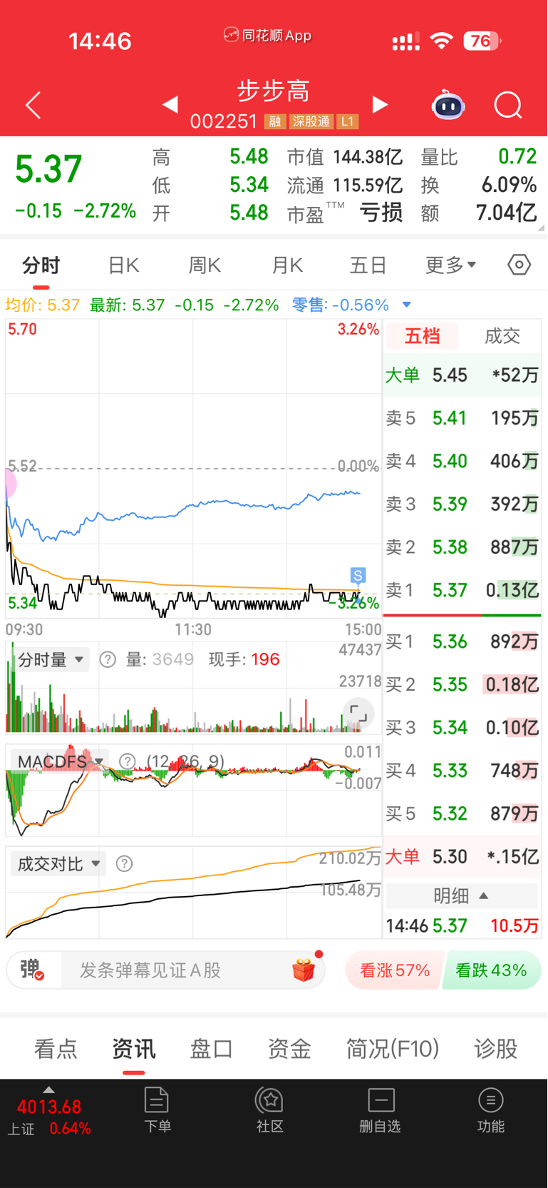 $步步高(SZ002251)$ 爱咋样咋样吧溜了