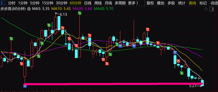 小时线实柱跌破,已减仓,今天下方看到5.10附近是否企稳,弱势继续等待,现在的盘