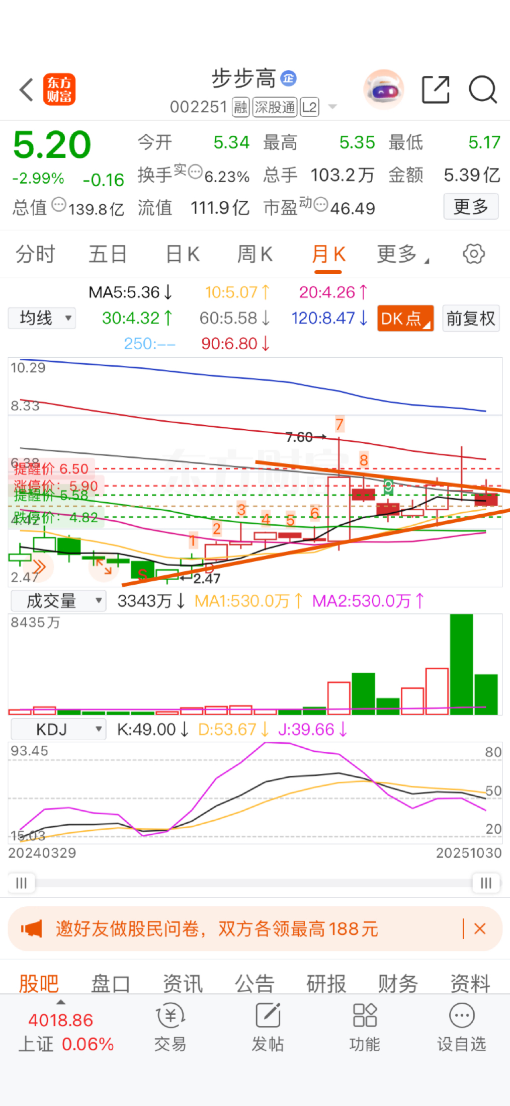 $步步高(SZ002251)$ 做好了到4.72的准备了,每天买点,买到下周