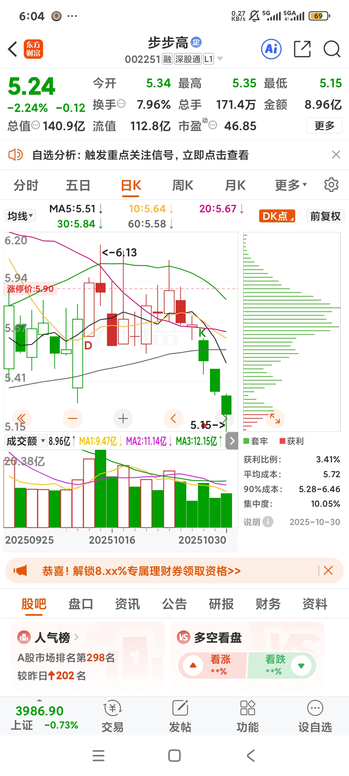 $步步高(SZ002251)$ 真是仙股,一泄千里