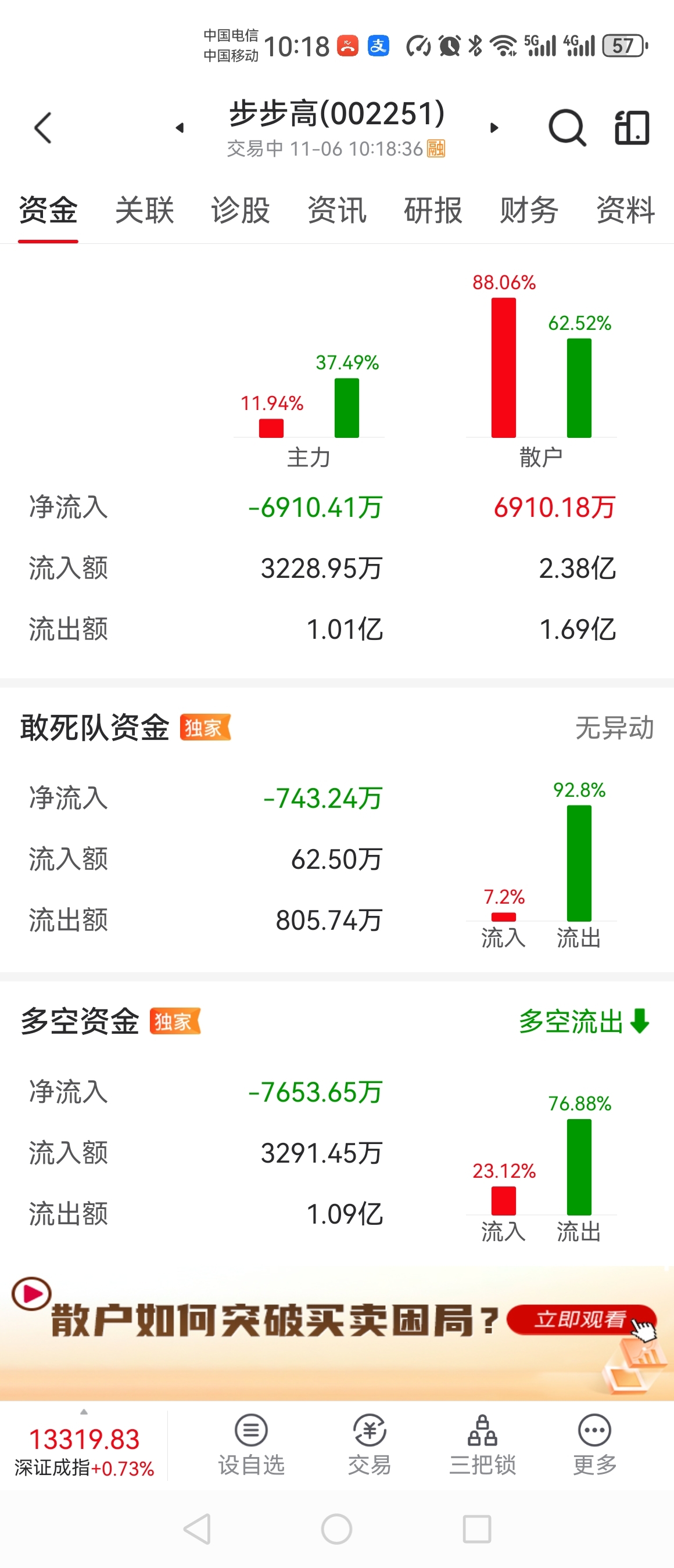 $步步高(SZ002251)$ 资金一日游?涨无望