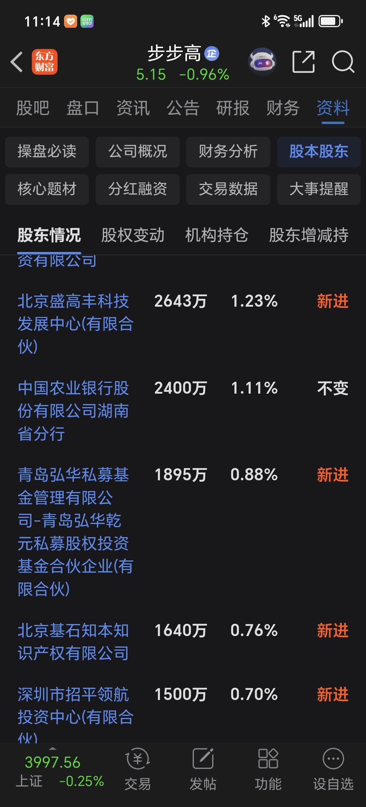 $步步高(SZ002251)$ 湘潭国资委现在持股只有2.5亿股了,破产重组时18亿股,投资人买去一些,剩下的在摘帽以后都被机构买去了