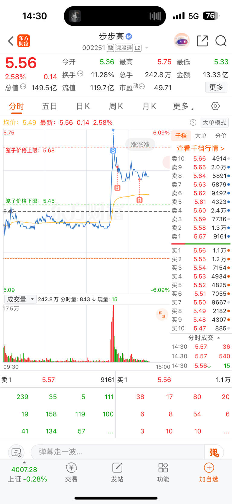 $步步高(SZ002251)$ 今天除了卖点其它都不完美,早上想补没补,T也做高了