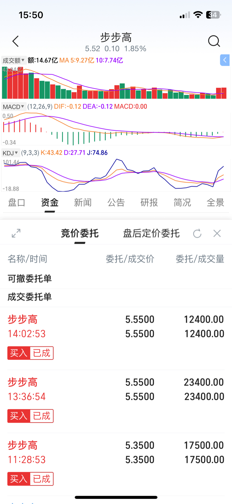 $步步高(SZ002251)$ 挂了5.35 5.34没砸下去, 5.55补了36000股 以为要吃肉 从6个点砸到1个多 2.5个点多都是追高了