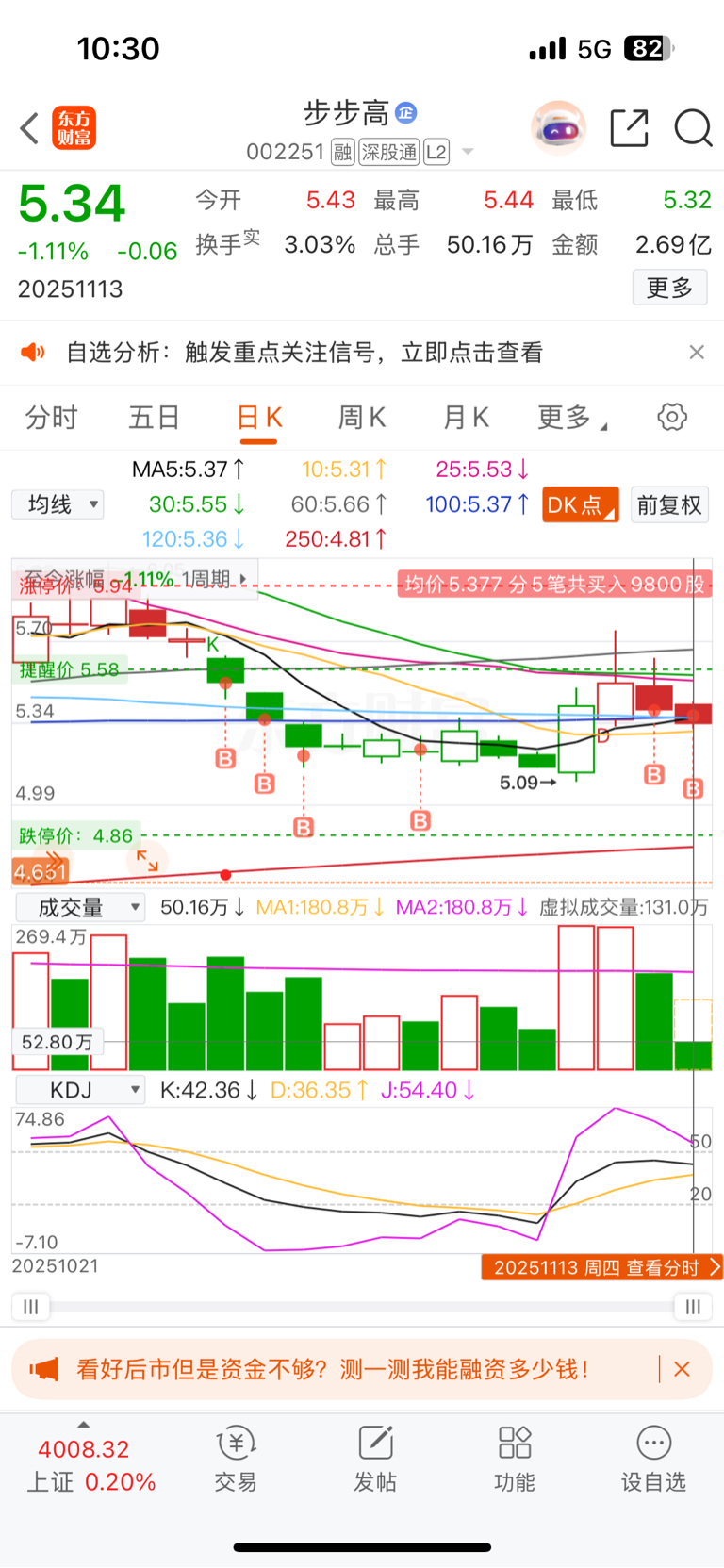 $步步高(SZ002251)$ 今天买高了就这样吧,太忙了没时间看了,明天黑色星期五就笑吧