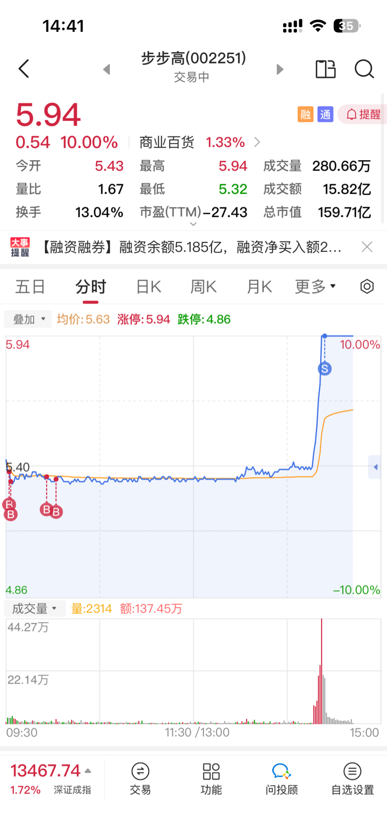 $步步高(SZ002251)$ #收盘点评# 美滋滋的,