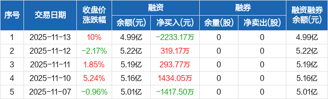 步步高:融资净偿还2233.17万元,融资余额4.99亿元(11-13)