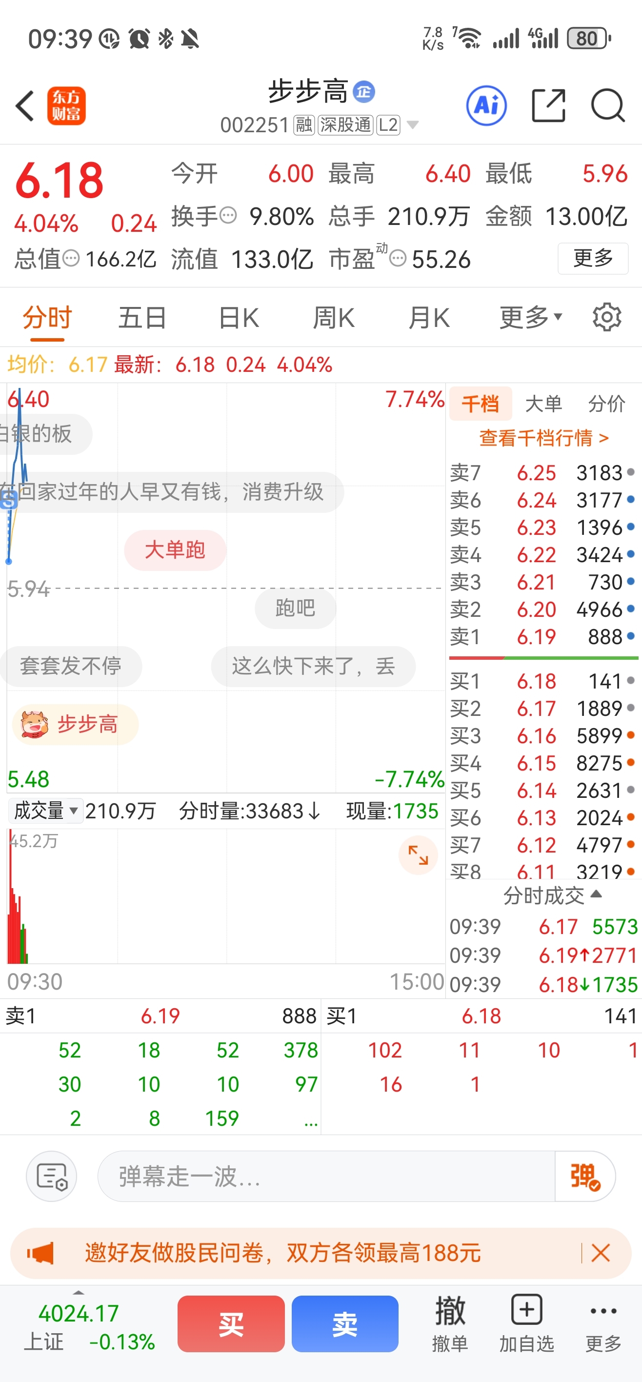 $步步高(SZ002251)$ 竞价吓跑了,卖飞6个点,太吓人了主要