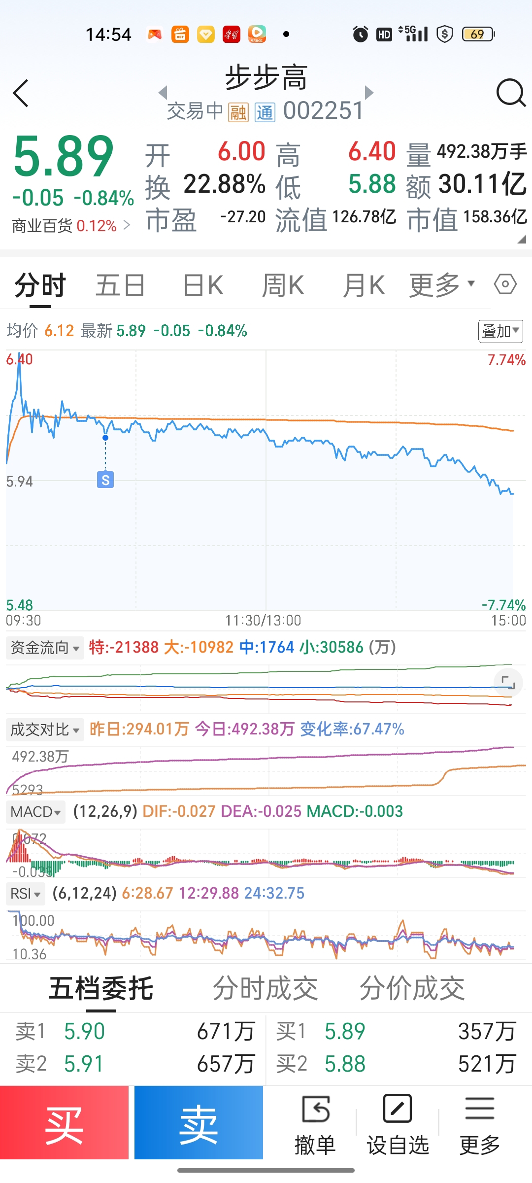 $步步高(SZ002251)$ 上午卖了拍大腿。下午一看,也是拍大腿