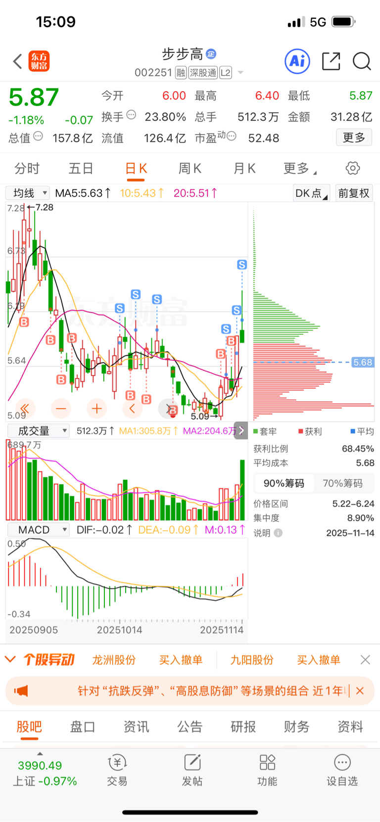 $步步高(SZ002251)$ 昨天说过,这票不能格局一点,还是感谢主力让我解套,留两手放着吧
